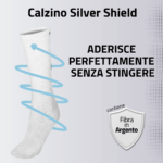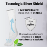 Stabilizzazione del microclima corporeo: la tecnologia Silver Shield aiuta a mantenere il microclima ideale all’interno del calzino. Mantiene i piedi protetti e al riparo da sbalzi termici, anche a basse temperature.